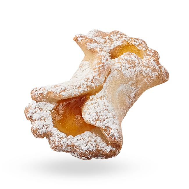 Cannolicchi da dessert farciti all'interno con confettura di albicocche e guarniti con una spolverata di zucchero a velo.